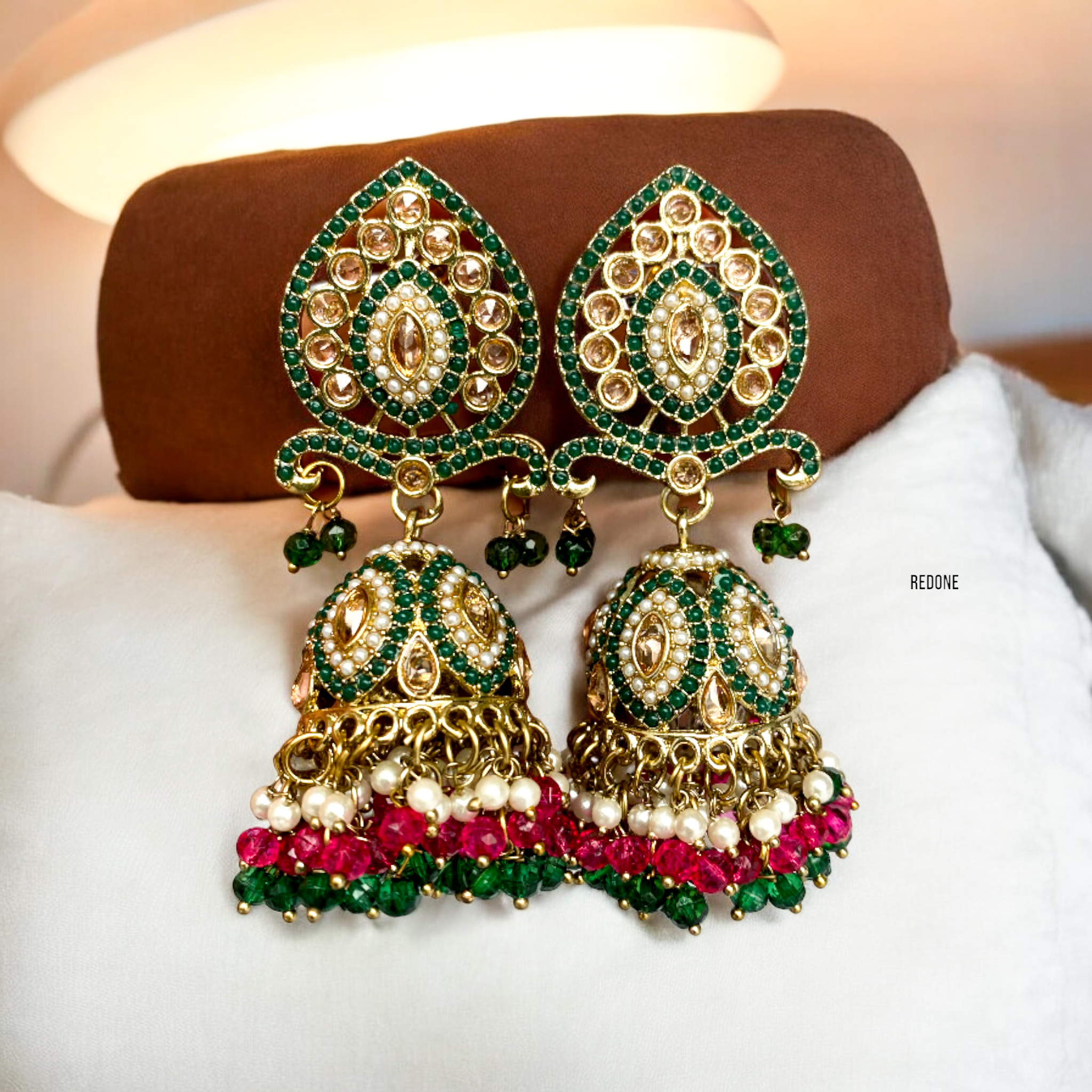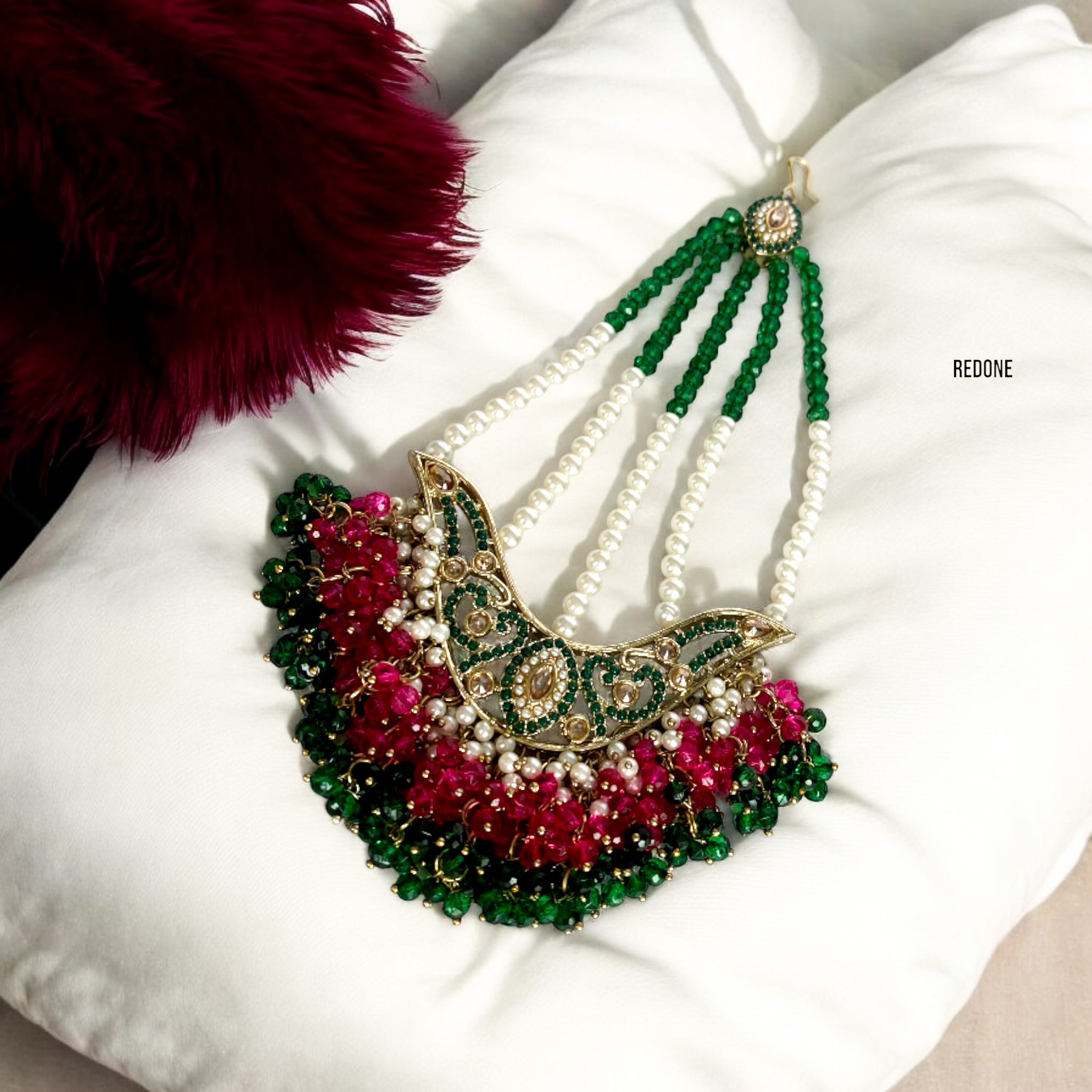 - Package Includes: 1 choker necklace, 1 pair of jhumka, 1 maang tikka 1 passa.